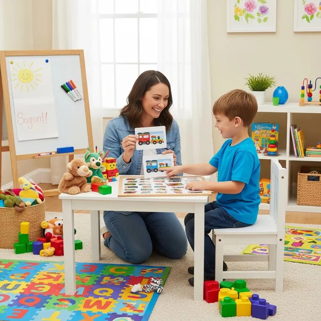 • Play-based activities: Natural chances to practice language through games and routines.